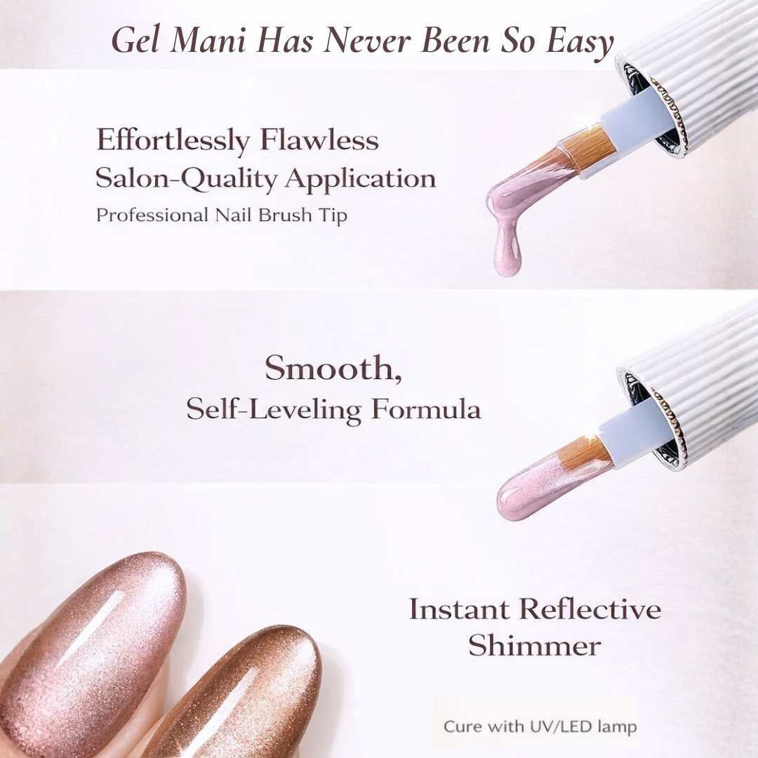 The self-leveling formula applies evenly for a flawless finish, while micro magnetic powder technology creates a refined, reflective cat-eye shimmer. Durable, glossy, and anti-scratch, it delivers long-lasting wear with a professional look.