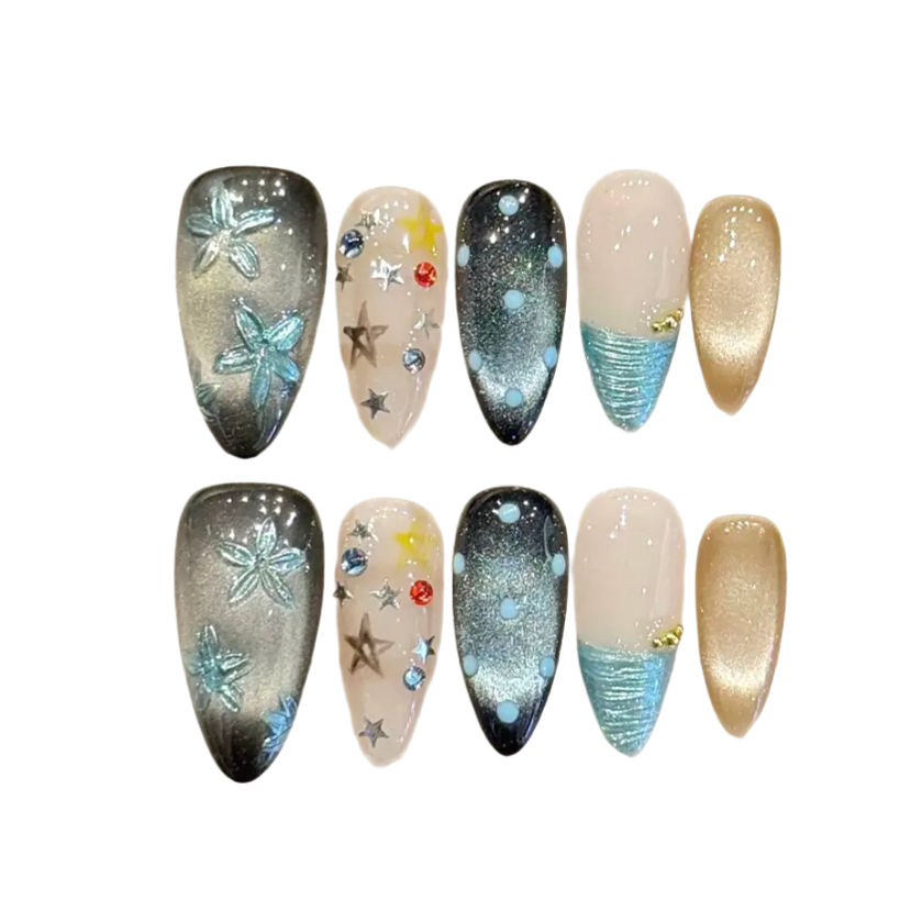 If you wish to alter shape/length/size on the existing design, please leave a SPECIFIC message of what you want in the custom box under the product title (if the box is not shown, it means this design is not customizable)