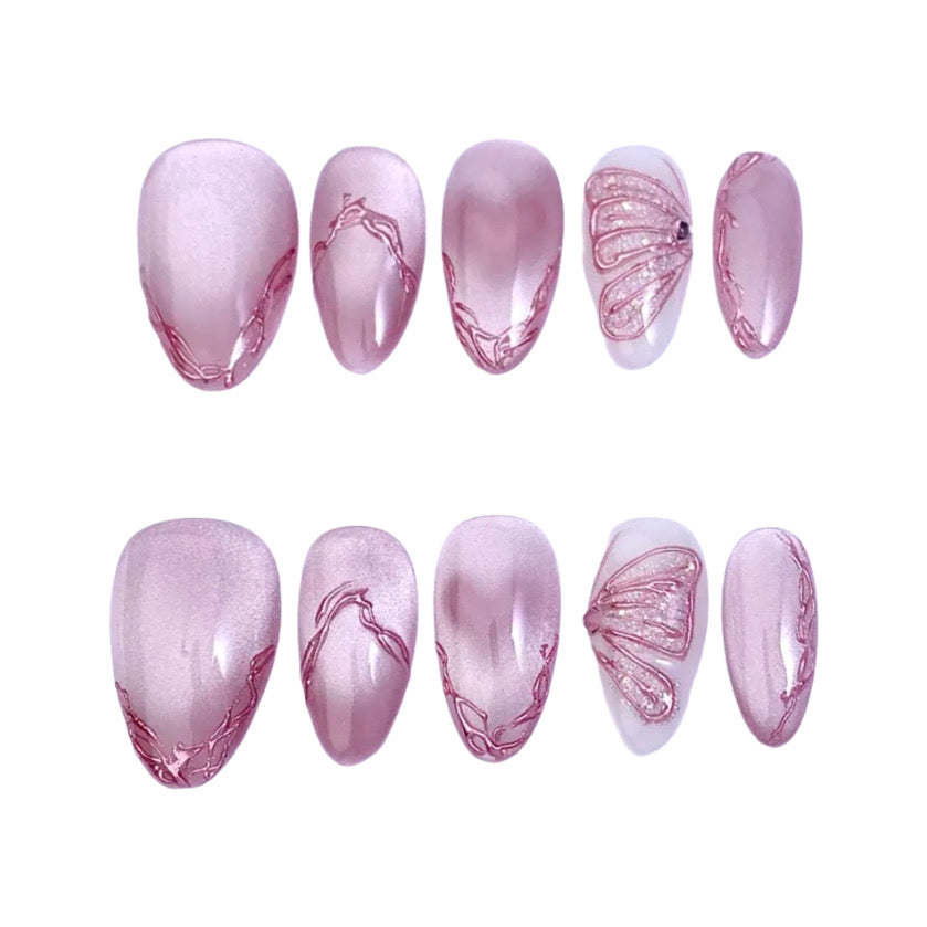 - Semi-handpainted press-on, pre-painted pigments with nail artists' refinement